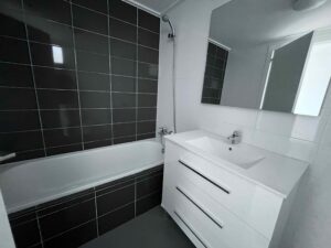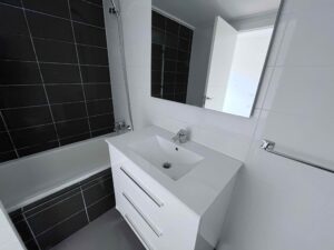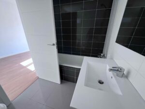 Además, los baños completos ofrecen funcionalidad y confort y recuerda que uno de ellos está en el dormitorio principal. Los suelos de parqué laminado aportan confort y la carpintería interior de madera lacada en blanco añaden un toque de elegancia a este espacio.